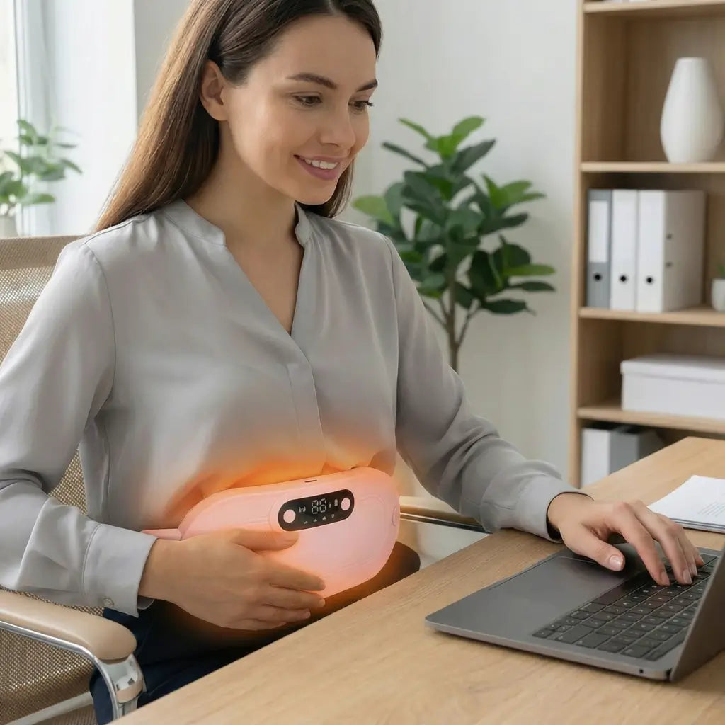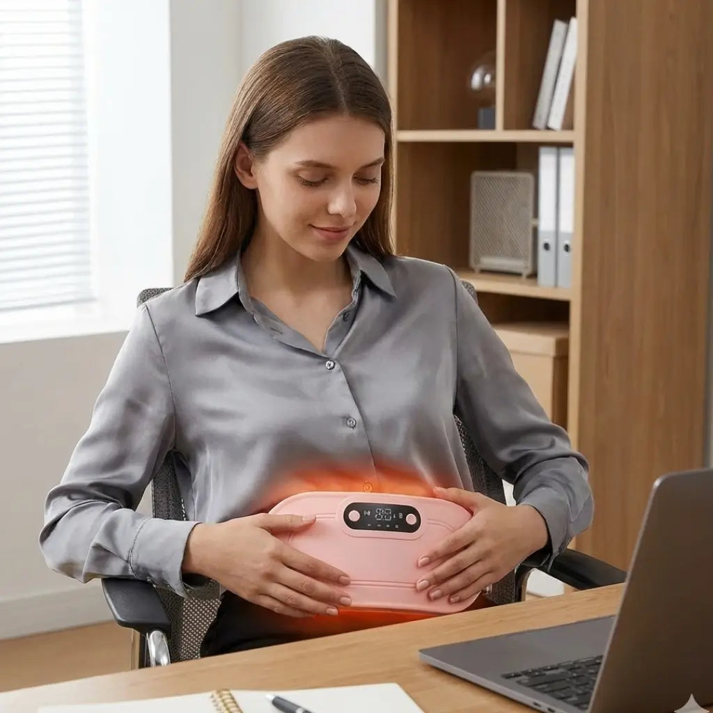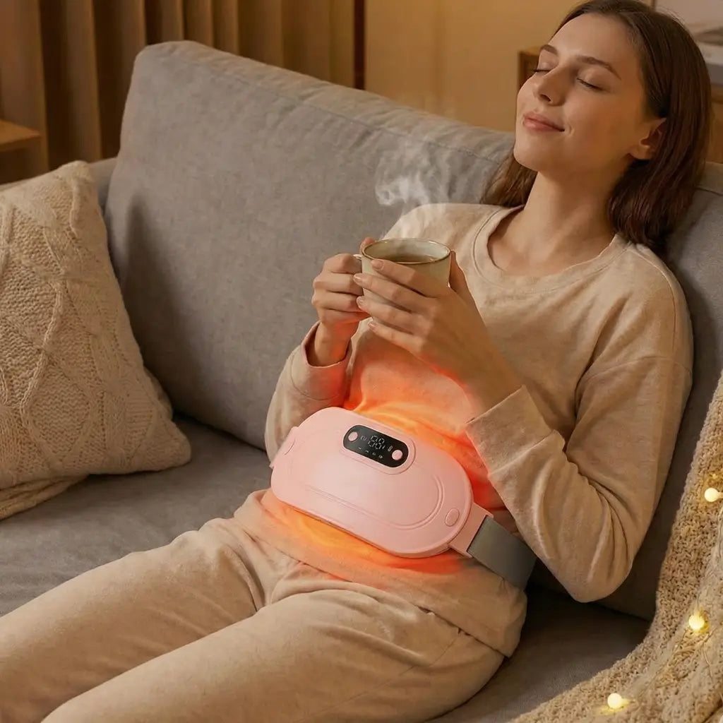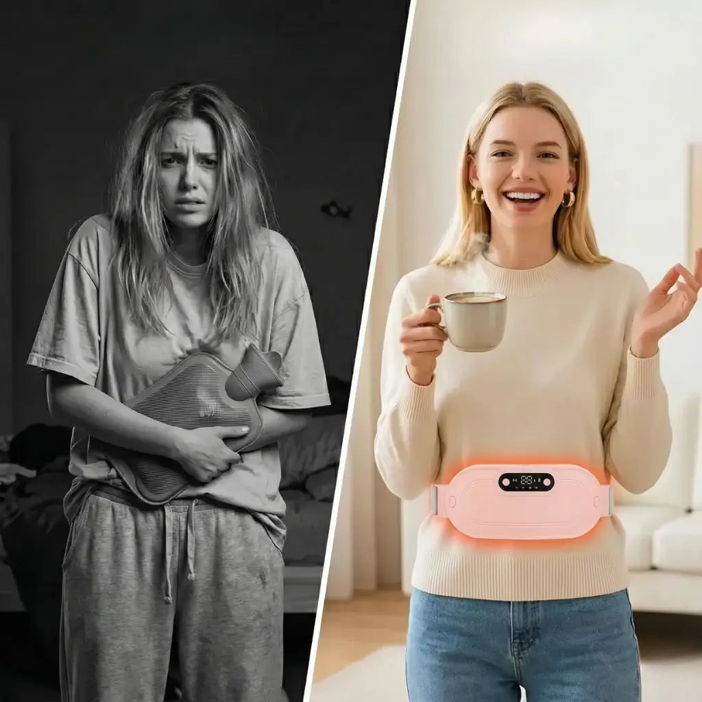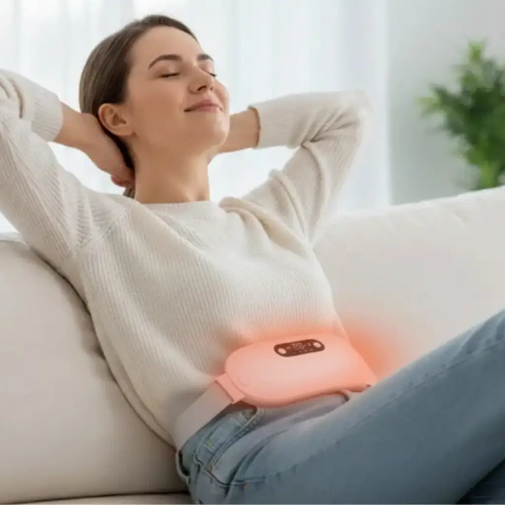 Olvida las bolsas de agua y los cables. Siente el abrazo cálido y el masaje que "apaga" el dolor menstrual en segundos.